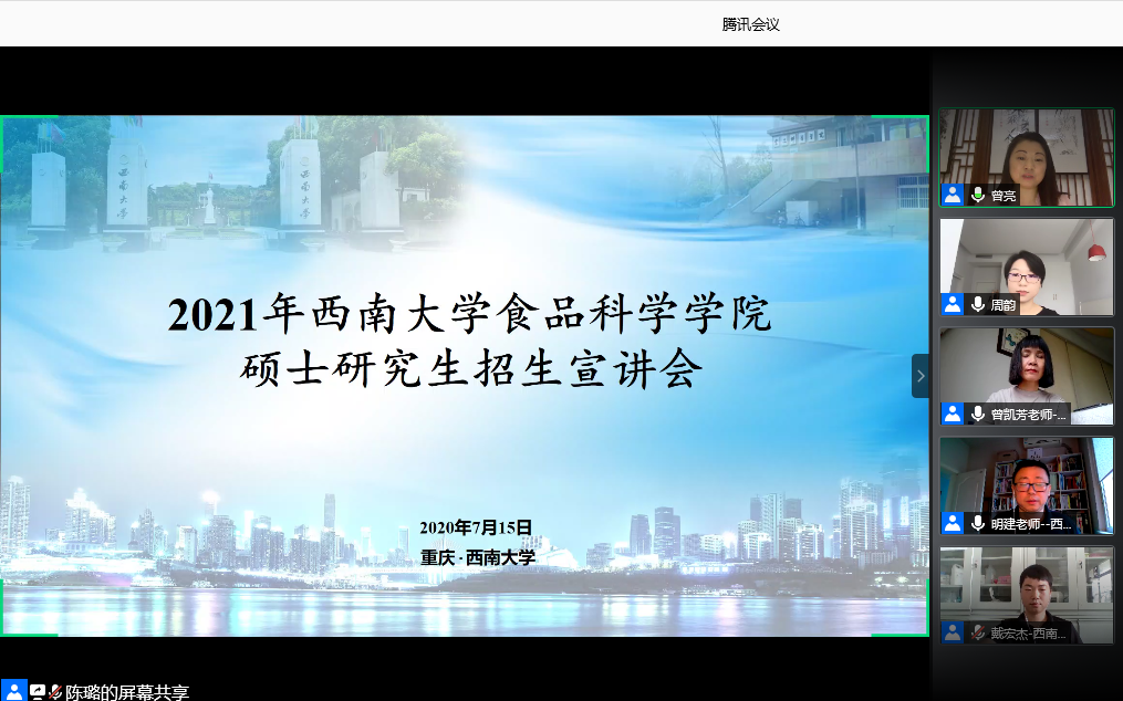 2021级硕士招生宣讲会成功举办,受疫情影响,宣讲会采取线上方式进行。曾亮副院长、曾凯芳教授、钟耕教授、明建教授、刘雄教授、周韵副教授、陈栋副教授、陈应娟副教授、戴宏杰老师、陈璐老师出席本次宣讲会。优秀毕业生卢志强、在校毕业研究生范晓文分享了研究生经历,全场280余人参加。