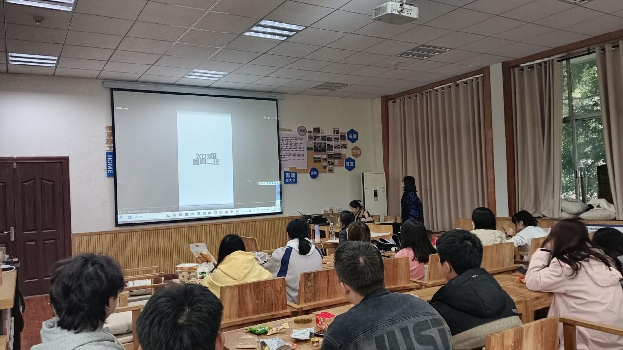 本次班会,旨在展现班级风采,建设班级文化,打造团结友爱的班集体。本次活动分为三部分,首先是班级vlog展示,以宿舍为单位,分享了同学们一天的大学生活,充分展现了大学生风貌。第二部分是小游戏“我是谁旁边的谁?”,让同学们在游戏中拉近彼此距离,分享彼此感受。第三部分是“班级朗读者”,以宿舍为单位,为大家分享一本书、一首诗或者一个故事。班主任易兰花老师在此环节为大家分享了她学生时期的故事,并鼓励大家珍惜大学时光,刻苦学习。在最后“我的自画像” 环节,让同们对于自身的角色变化有了新的体会。