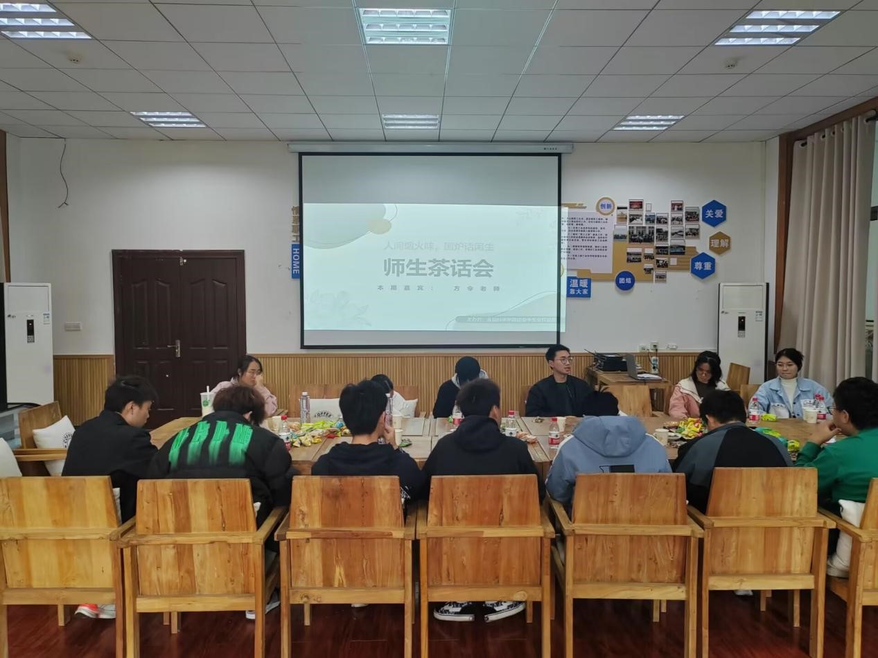 2023级本科生辅导员方令为同学们答疑解惑,参加本次师生茶话会的有2023级王乙兰、欧曼丽、郭靖东等15位同学。方令老师在充分了解了同学们的疑惑后进行了一一解答。