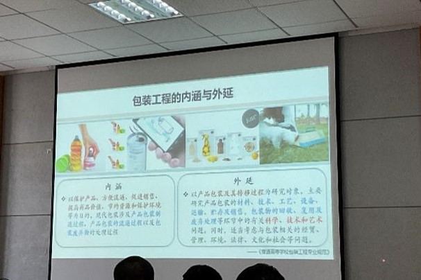 首先,徐丹老师介绍了包装行业从2016年来的发展状况,重点指出2011年包装行业被列入国民经济发展规划,且十一届全国人大会议批准实施的《纲要》中提出:包装行业要加快发展先进包装装备、包装新材料和高端包装制品。结合国家政策和市场发展,徐丹老师从外延与内涵深度剖析了包装工程专业,帮助同学们了解包装工程专业。
