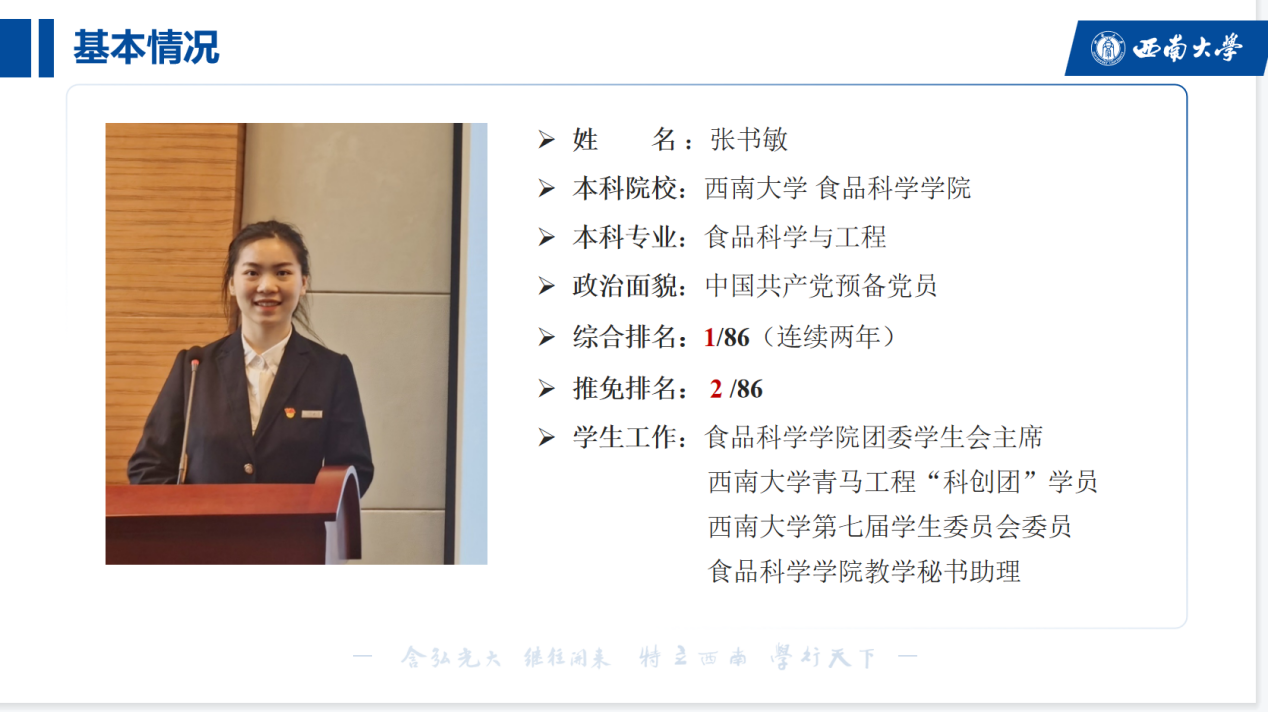 活动开始,张书敏从个人学习、学生工作、科研与竞赛三个方面分享了自己的大学经历,并重点对评优评奖,“百超”班选拔,科研经历等方面进行了介绍,鼓励同学们要重视学习,端正学习态度,积极参加各项活动,不畏惧失败,牢记所有的失败与尝试都是成功的开始。
