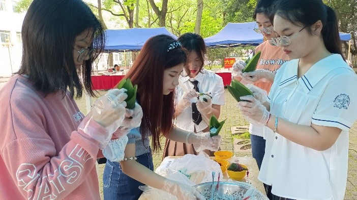 下午五点,学生们都带着自己的粽子满载而归,活动就此圆满落幕。现场参与活动的学生纷纷表示:在参与活动的过程中,自己不仅学习到了粽子的包法,也增强了对南北方端午节不同传统习俗的了解,深刻理解丰富多元的中华文化,提升对文化差异的包容度。 第一次了解并参与到包粽子的实践中来,增强了自己的动手能力。此外,大家都在劳动的过程中感受到心情的愉悦,缓解了学习带来的压力。