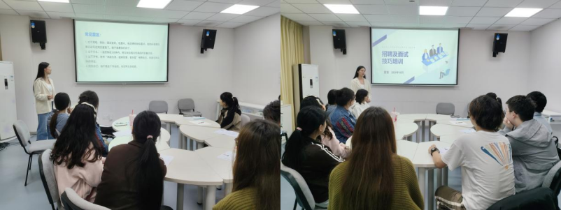 于10月18日晚上19点在学生处408教室组织开展了面试指导讲座,本次讲座由2021级辅导员夏雪主讲。