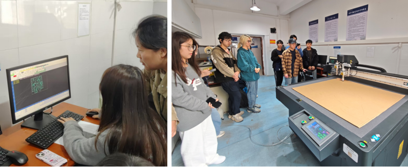 活动伊始任丹老师首先向同学们介绍了瓦楞纸板的特性及其在包装设计中的应用。随后同学们在老师的指导下分组合作开始了八角章鱼凳和花瓶的制版、模切及拼接工作。通过模切机将瓦楞纸板切割成所需的形状并进行拼接这一过程不仅锻炼了同学们的软件操作技能也提高了同学们解决实际问题的能力。