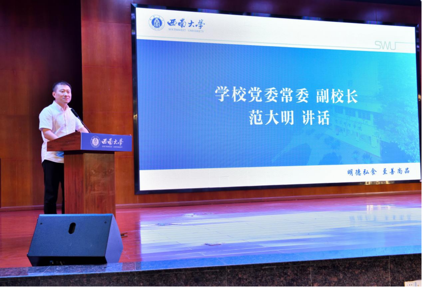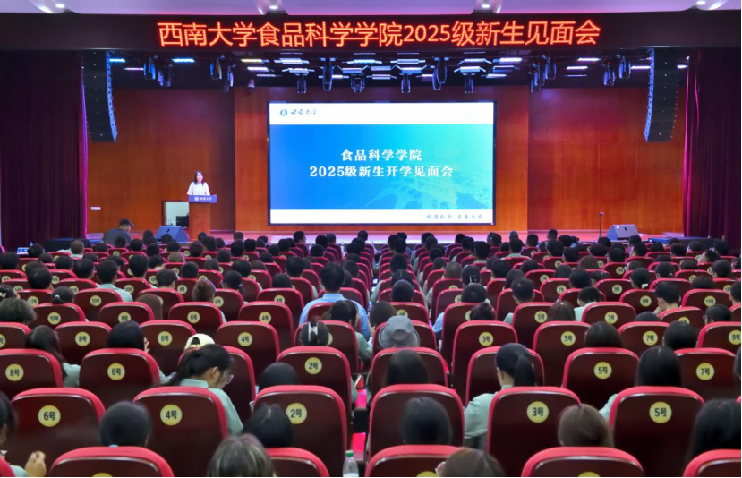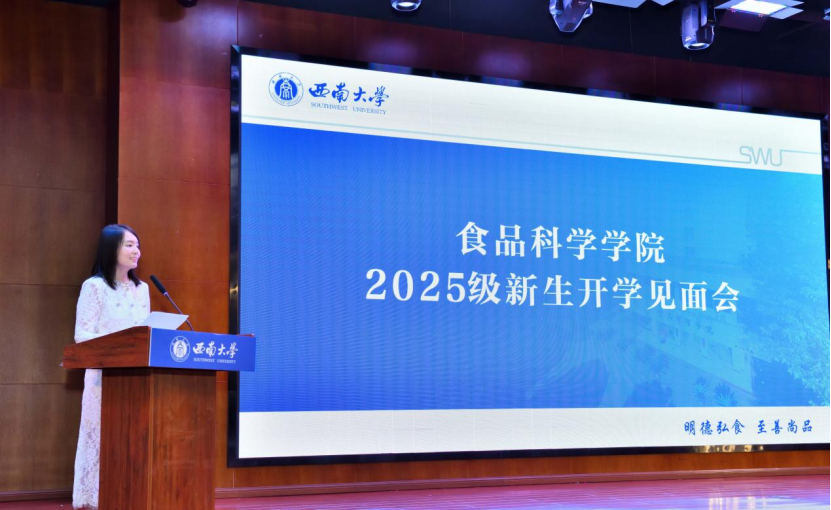 在发言环节,在校生代表2023级本科生熊婧伊分享了自己从迷茫到成长的经历,鼓励新生走出舒适圈,勇于探索前行的路。研究生新生代表江薇围绕“创新与坚持”阐述了科研路上的探索与体会。本科生新生代表詹城以“老鹰茶迎新”为切入点,表达了新一代食品人守护“守护舌尖上的安全”的决心。