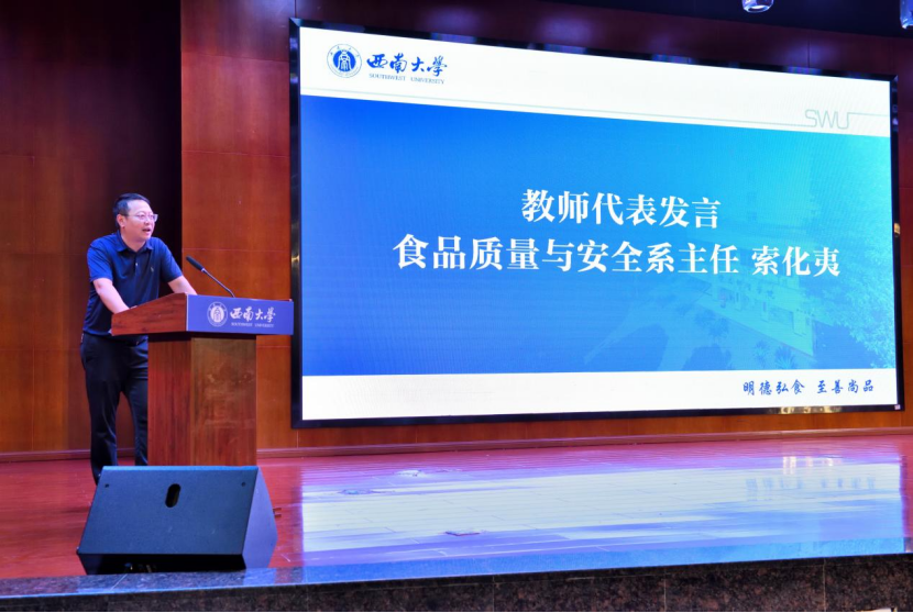 教师代表、食品质量与安全系主任索化夷则结合自身从学生到教授的成长经历,勉励学生主动适应大学节奏,积极参与课程与创新实践,努力“把文章写在大地上”,成长为学院骄傲与国家栋梁。会上还播放了各专业的宣传视频及近三年学生升学、就业情况表,生动展示了各专业的学科特色与发展前景。