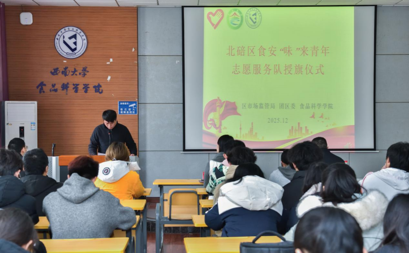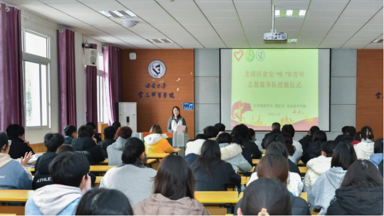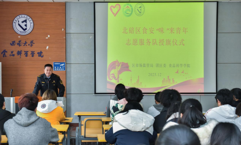 为规范志愿服务开展,强化责任担当,2025年12月5日,北碚区食安“味”来青年志愿服务队授旗仪式暨志愿培训在jav图书馆