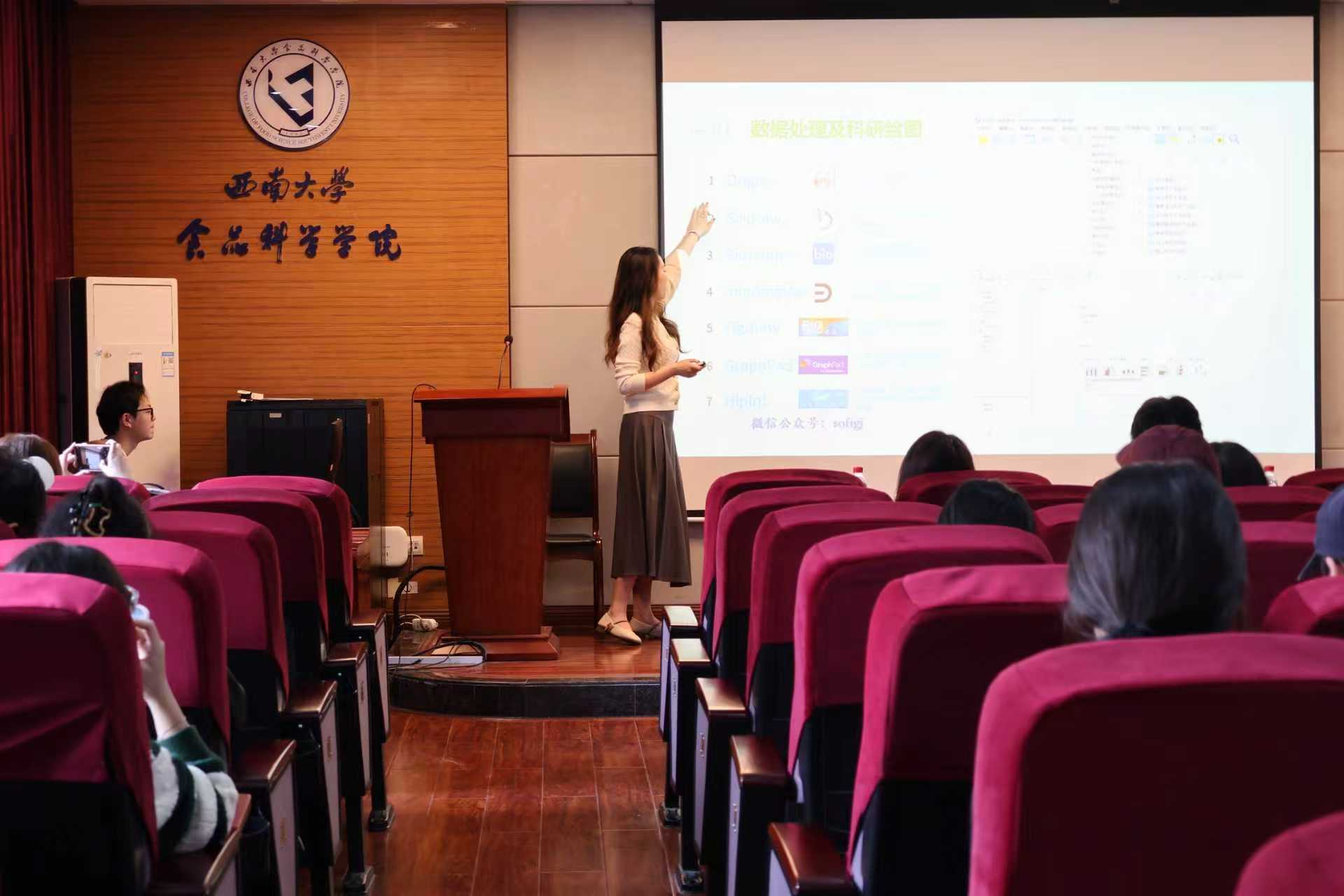 随后,陈岩潮从“掌握科研技巧,精进论文写作”这一方面,为新生提供了从基础能力培养到实战写作的“硬核”指导。她指出,阅读高分文献有助于深化专业认知并提升英语能力,同时推荐了一系列实用的科研工具,涵盖数据处理、文献检索与管理等方面。在论文写作环节,她详细解析了研究性论文与综述性论文的差异,并提醒新生注意避免数据堆砌、规范引用格式等常见问题。