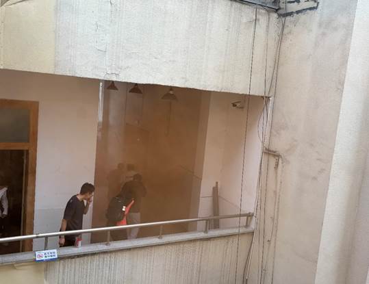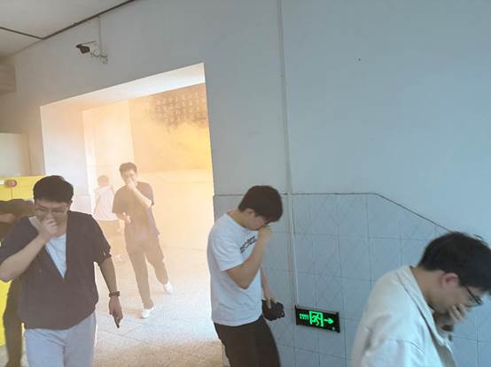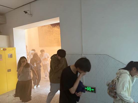 随着模拟“火情”发生,烟雾弥漫整个教室及楼道。面对突如其来的“火灾”,参与演练的师生们迅速反应,在工作人员的指引下,捂住口鼻,弯腰沿着指定的安全通道有序撤离,行动迅速、配合默契,充分展现了jav图书馆
