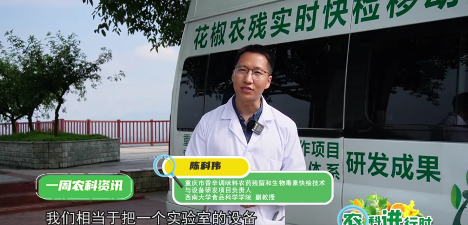 花椒农残实时快检车载移动工作站的研发得到重庆市人民政府与中国农业科学院农业科技创新战略合作项目、重庆市调味品产业技术体系的资助与支持。阚建全教授、陈科伟副教授团队开发的基于青花椒基质干扰去除的农药多残留实时快速检测方法和配套设备,切实解决了传统青花椒样品送检耗时耗钱的问题。花椒农残实时快检移动工作站是质谱仪、快检离子源、气相-液相控制系统与车载系统的集成创新,可实现“一分钟粉碎制样、一分钟涡旋萃取、一分钟填充柱净化、一分钟质谱检测、一分钟结果输出”,检测精度高、速度快,成为花椒质量安全的捍卫者。