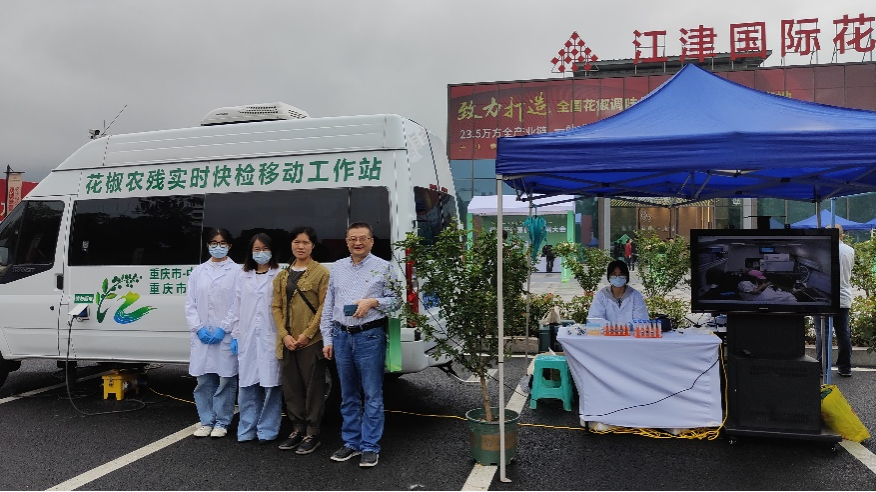 、中国农业科学院蔬菜花卉研究所、山东国投鸿基检测技术股份有限公司联合研发的花椒农残实时快检车载移动工作站于2024年5月27日至2024年6月4日在重庆市江津区国家青花椒标准化服务推广平台、国际花椒产业城以及江津区14个镇街开展流动测样,共检测鲜青花椒田间样品800余份,实时筛查400余种农药,设备运行良好,显著提高了鲜青花椒农残检测效率,对保障青花椒品质有重要作用。